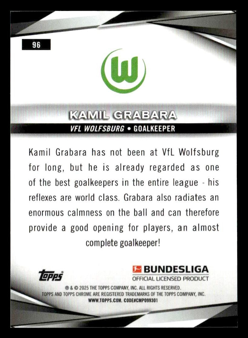 This is a sharp example of the 2024-25 Topps Chrome Bundesliga #96 featuring Kamil Grabara.