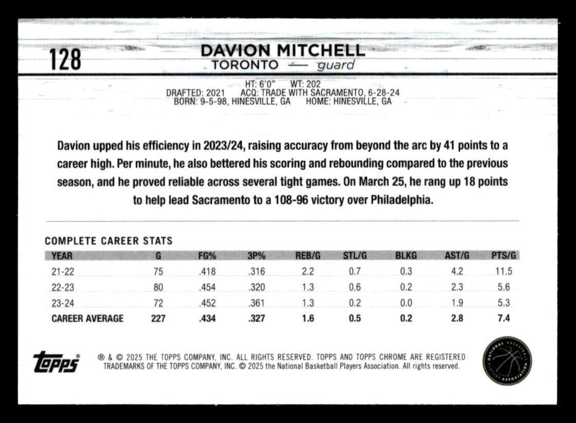 Davion Mitchell played for the Toronto Raptors in 2024, and this card is a standout from the Topps 2024-25 Topps Chrome Sapphire release. Whether you're chasing rookies, SSPs, or building a premium collection, this card delivers.