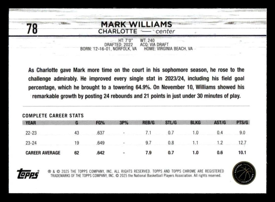 Mark Williams β 2024 Topps 2024-25 Topps Chrome Sapphire