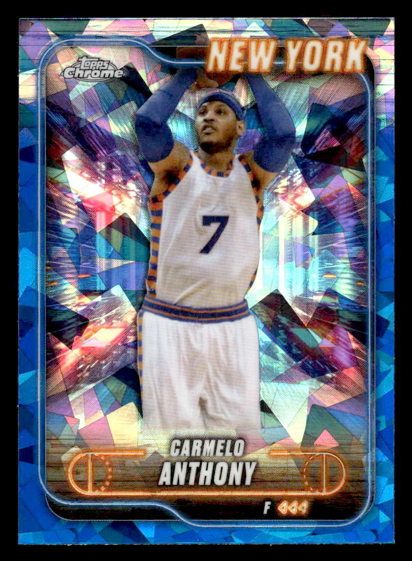 This is a sharp example of the 2024-25 Topps Chrome Sapphire #83 featuring Carmelo Anthony.