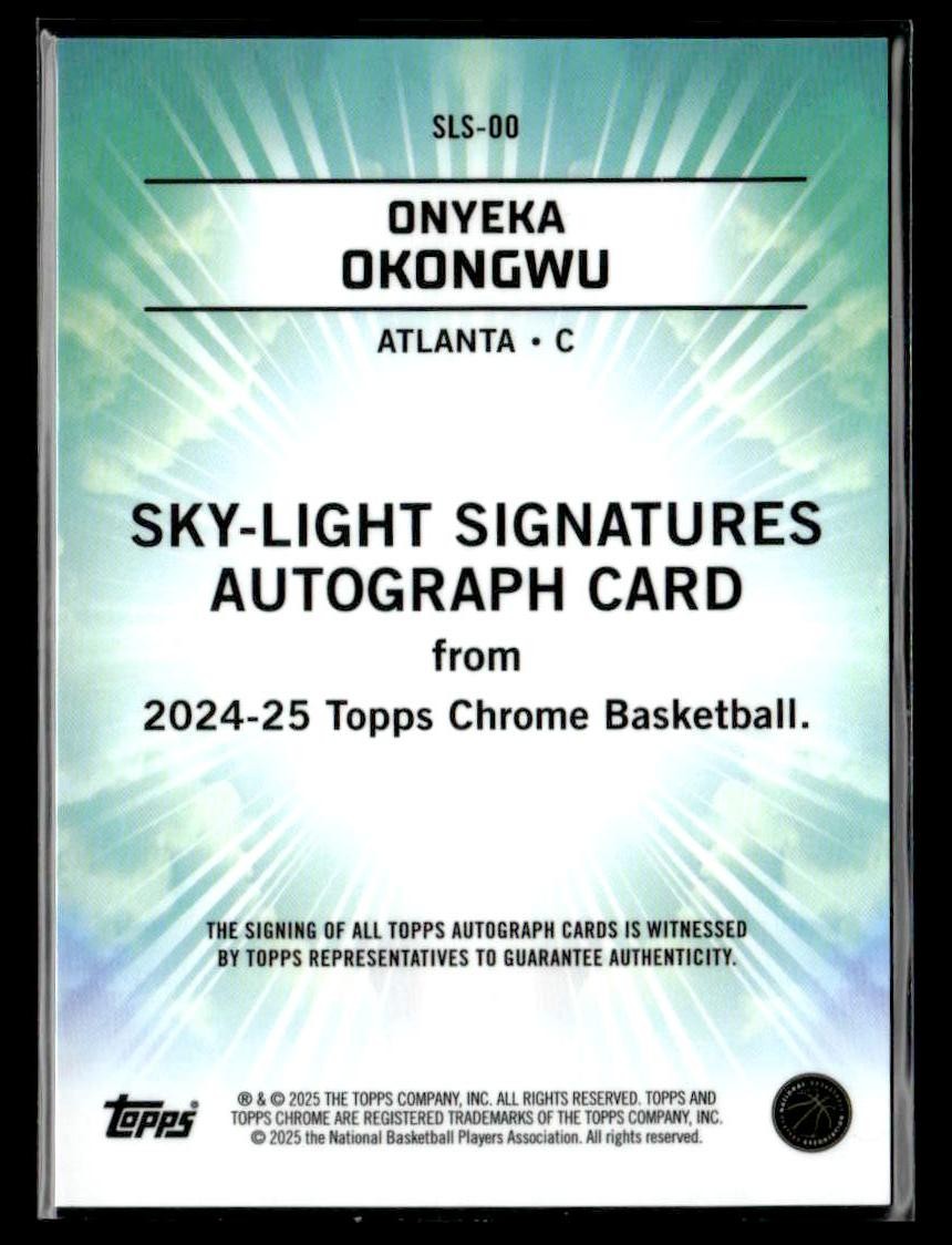 Onyeka Okongwu played for the Atlanta Hawks in 2024, and this card is a standout from the Topps 2024-25 Topps Chrome Sapphire release. Whether you're chasing rookies, SSPs, or building a premium collection, this card delivers.