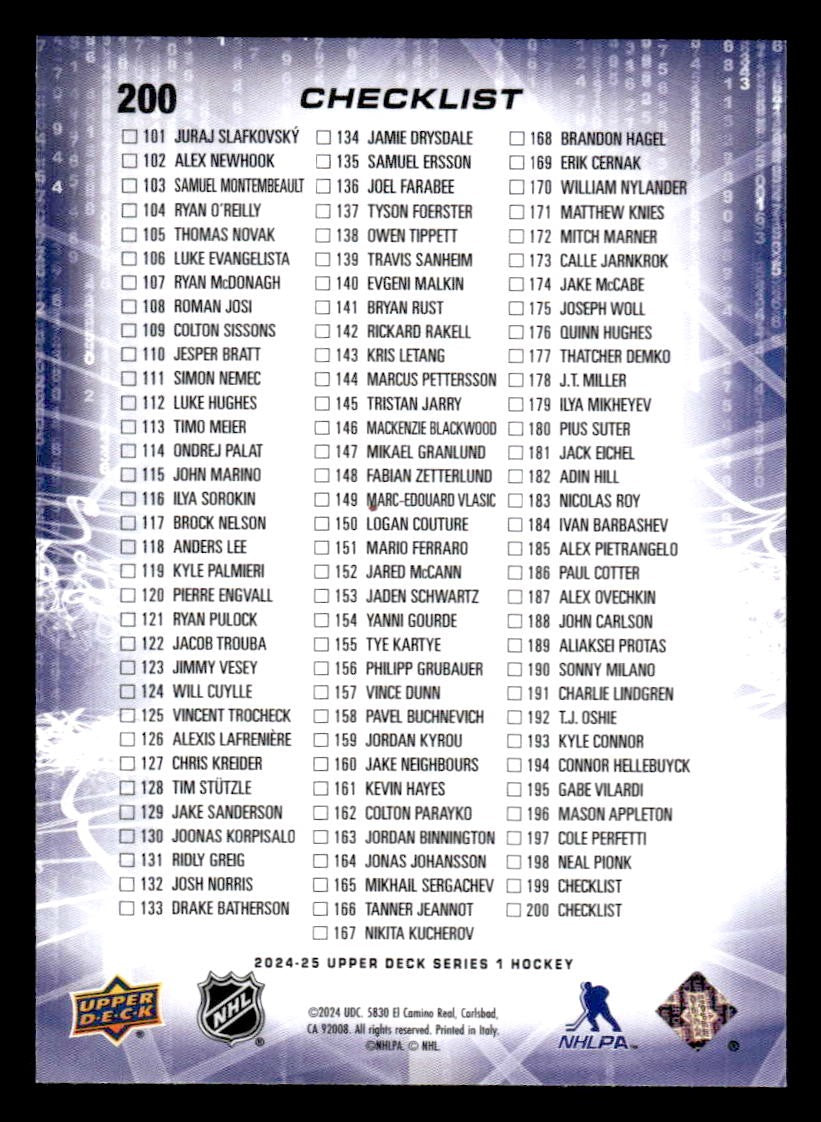 This is a nice example of a 2024-25 Upper Deck #200 Nikita Kucherov / William Nylander