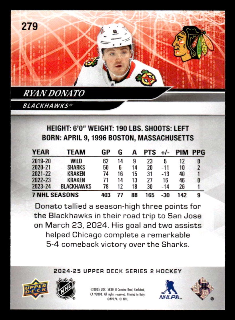 This is a nice example of a 2024-25 Upper Deck #279 Ryan Donato