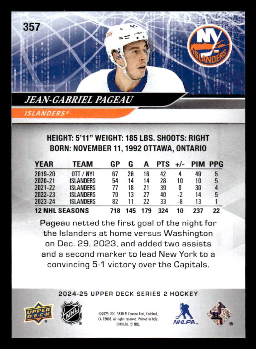 This is a nice example of a 2024-25 Upper Deck #357 Jean-Gabriel Pageau