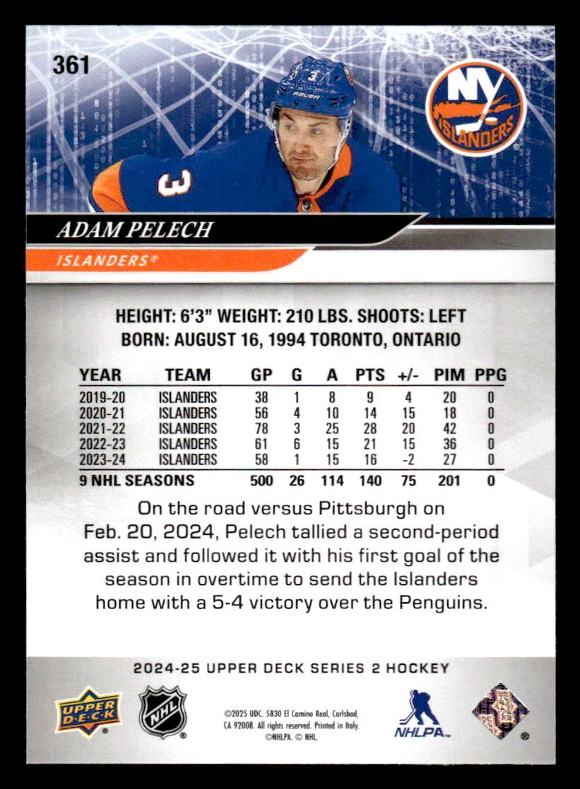 This is a nice example of a 2024-25 Upper Deck #361 Adam Pelech