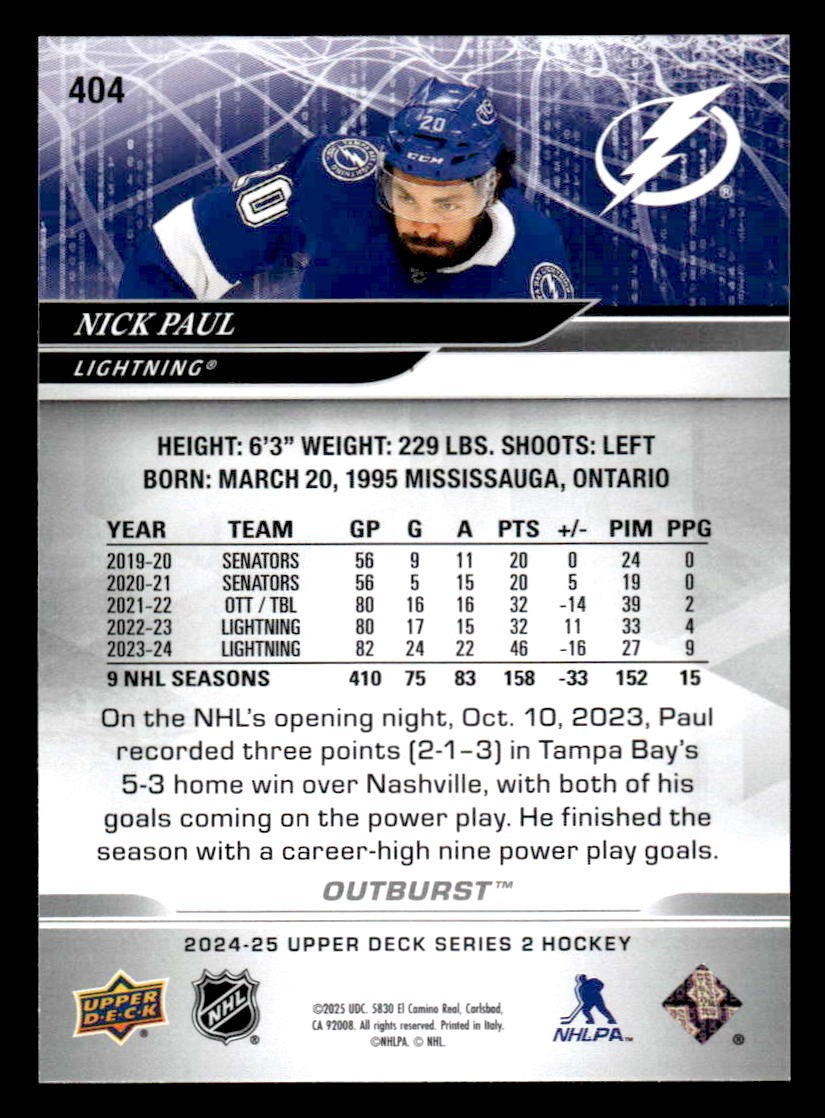 2024-25 Upper Deck #404 Nick Paul Outburst Silver