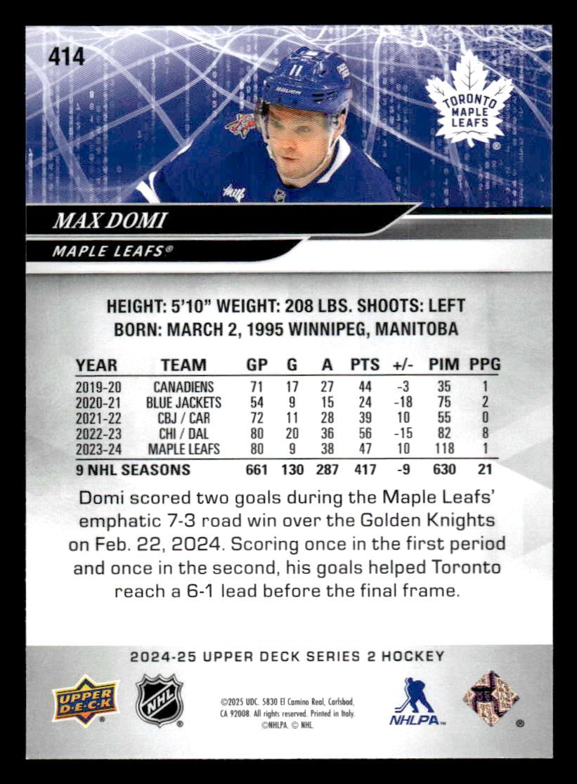 This is a nice example of a 2024-25 Upper Deck #414 Max Domi