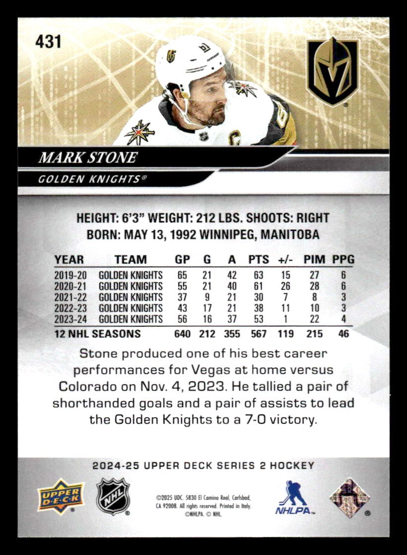 This is a nice example of a 2024-25 Upper Deck #431 Mark Stone