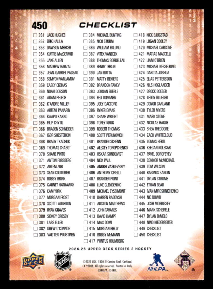 This is a nice example of a 2024-25 Upper Deck #450 Sebastian Aho / Brady Tkachuk