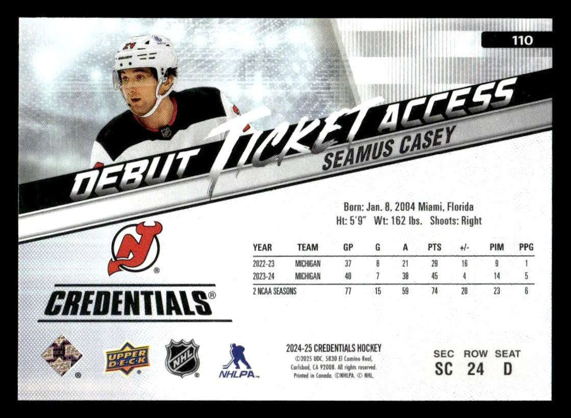 2024-25 Upper Deck Credentials #110 Seamus Casey Debut Ticket Access