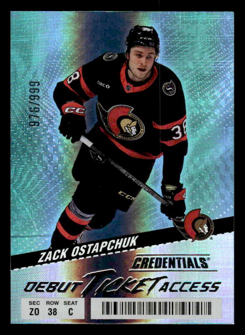 Zack Ostapchuk played for the Ottawa Senators in 2024, and this card is a standout from the Upper Deck 2024-25 Upper Deck Credentials release. Whether you're chasing rookies, SSPs, or building a premium collection, this card delivers.