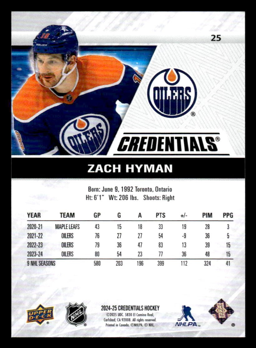 This is a sharp example of the 2024-25 Upper Deck Credentials #25 featuring Zach Hyman.
