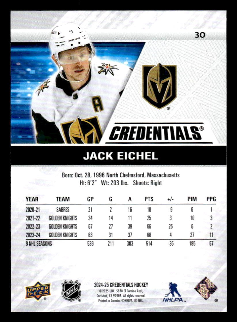 Jack Eichel β 2024 Upper Deck 2024-25 Upper Deck Credentials