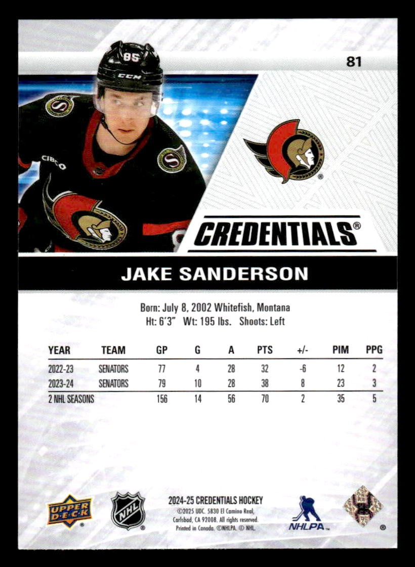 2024-25 Upper Deck Credentials #81 Jake Sanderson