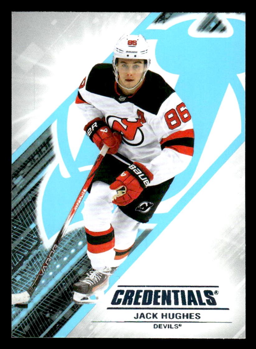 This is a sharp example of the 2024-25 Upper Deck Credentials #86 featuring Jack Hughes.