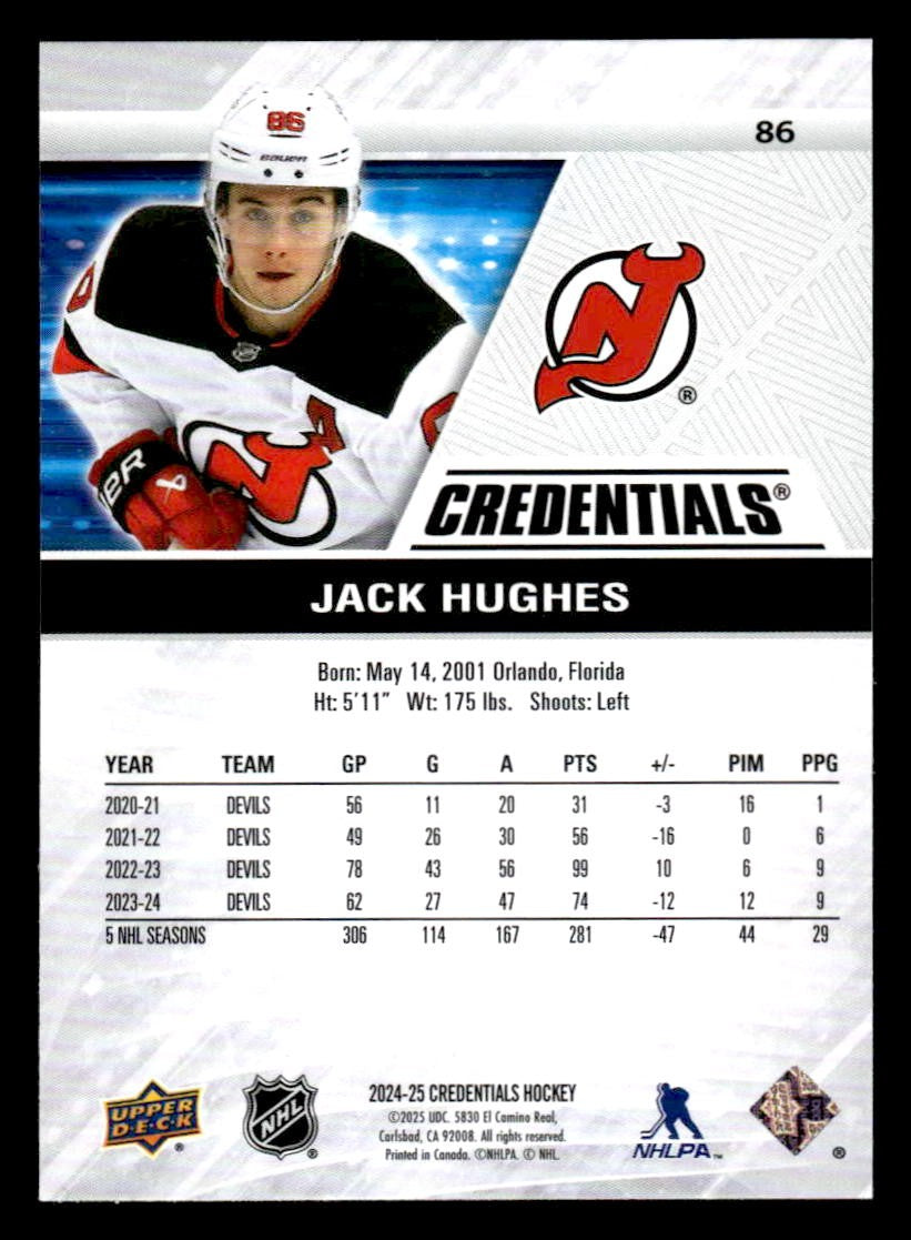 2024-25 Upper Deck Credentials #86 Jack Hughes