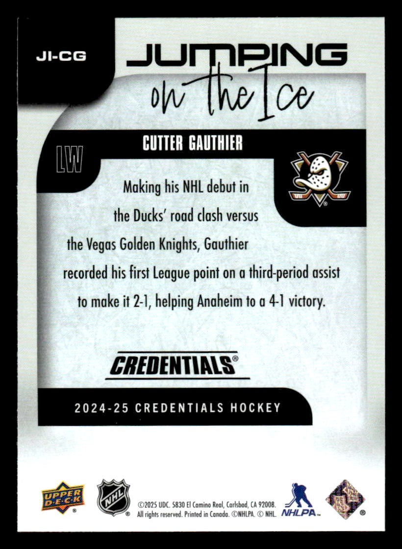 2024-25 Upper Deck Credentials #JI-CG Cutter Gauthier Jumping on the Ice