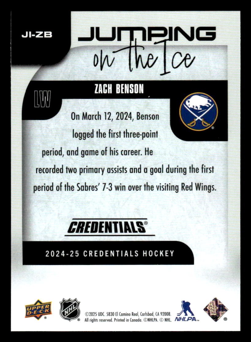 2024-25 Upper Deck Credentials #JI-ZB Zach Benson Jumping on the Ice