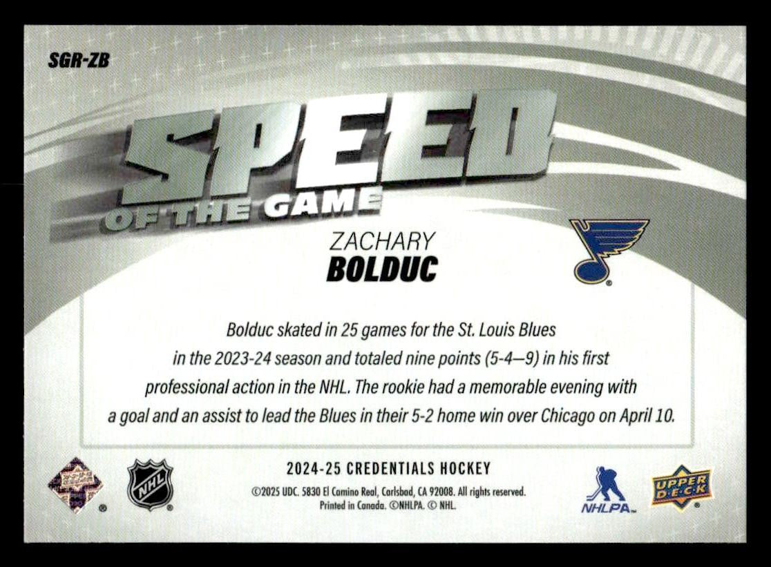 2024-25 Upper Deck Credentials #SGR-ZB Zachary Bolduc Speed of the Game