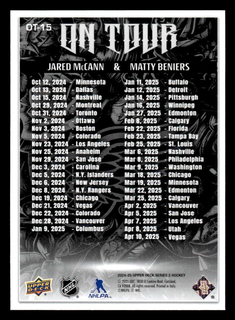 This is a nice example of a 2024-25 Upper Deck #OT-15 Jared McCann / Matty Beniers On Tour