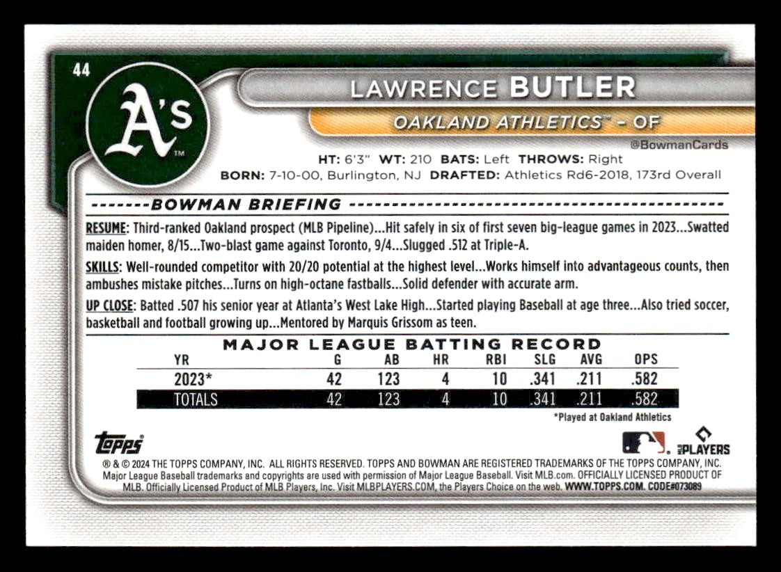This is a nice example of a 2024 Bowman #44 Lawrence Butler