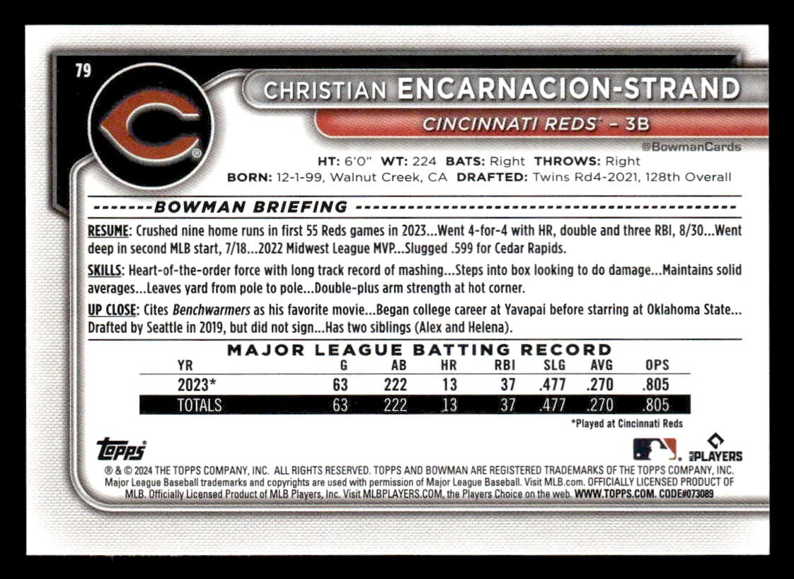 This is a nice example of a 2024 Bowman #79 Christian Encarnacion-Strand