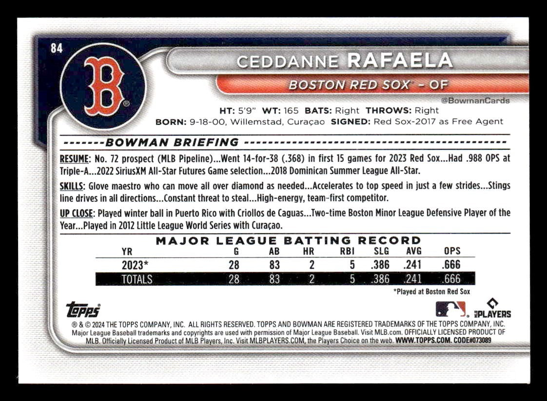 This is a nice example of a 2024 Bowman #84 Ceddanne Rafaela
