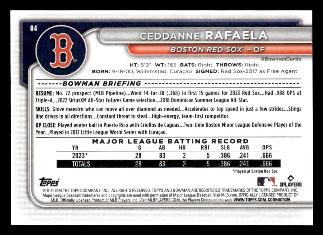 This is a nice example of a 2024 Bowman #84 Ceddanne Rafaela