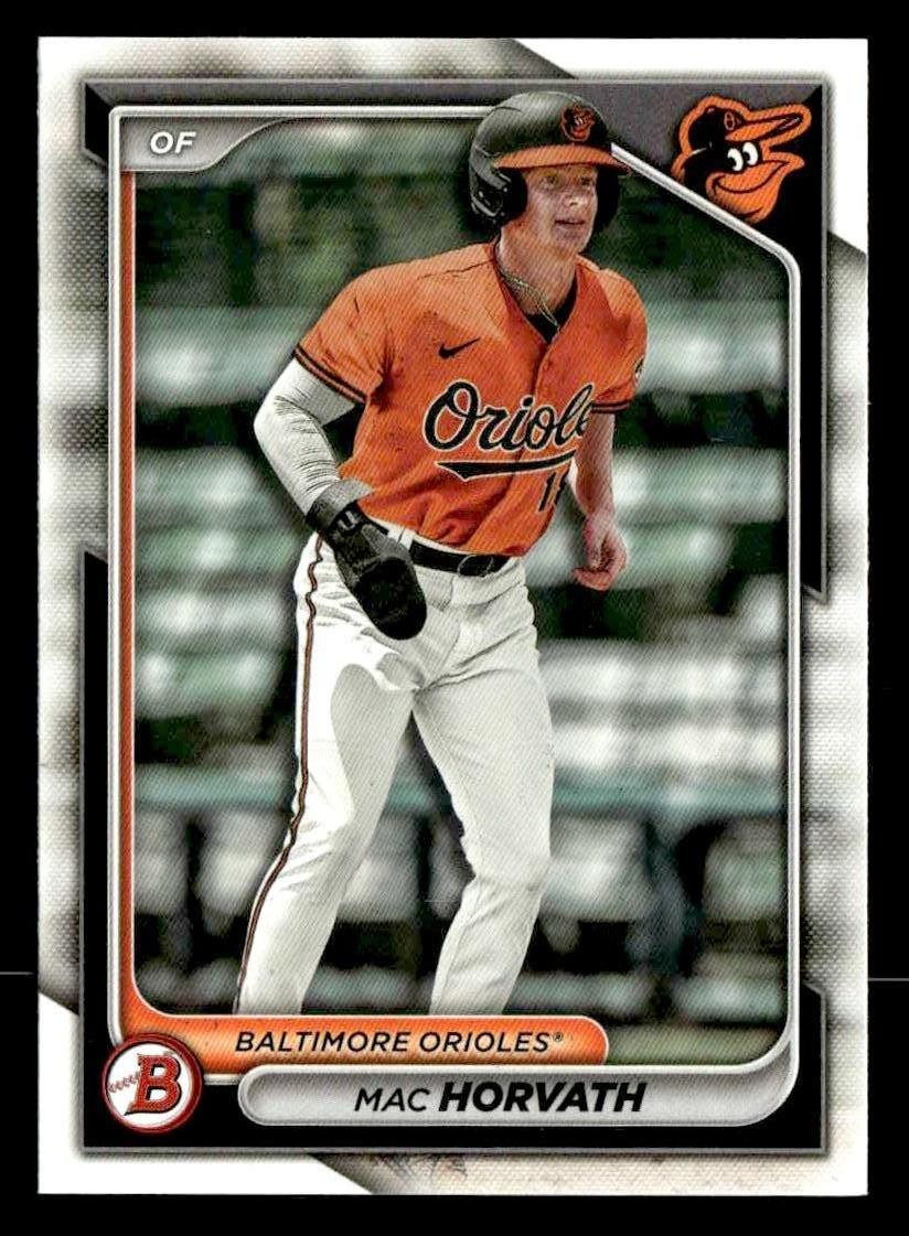 This is a nice example of a 2024 Bowman #BP-6 Mac Horvath Prospects
