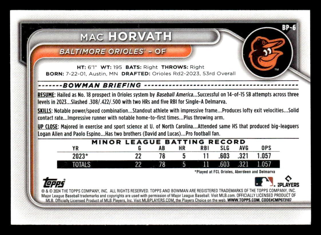 2024 Bowman #BP-6 Mac Horvath Prospects