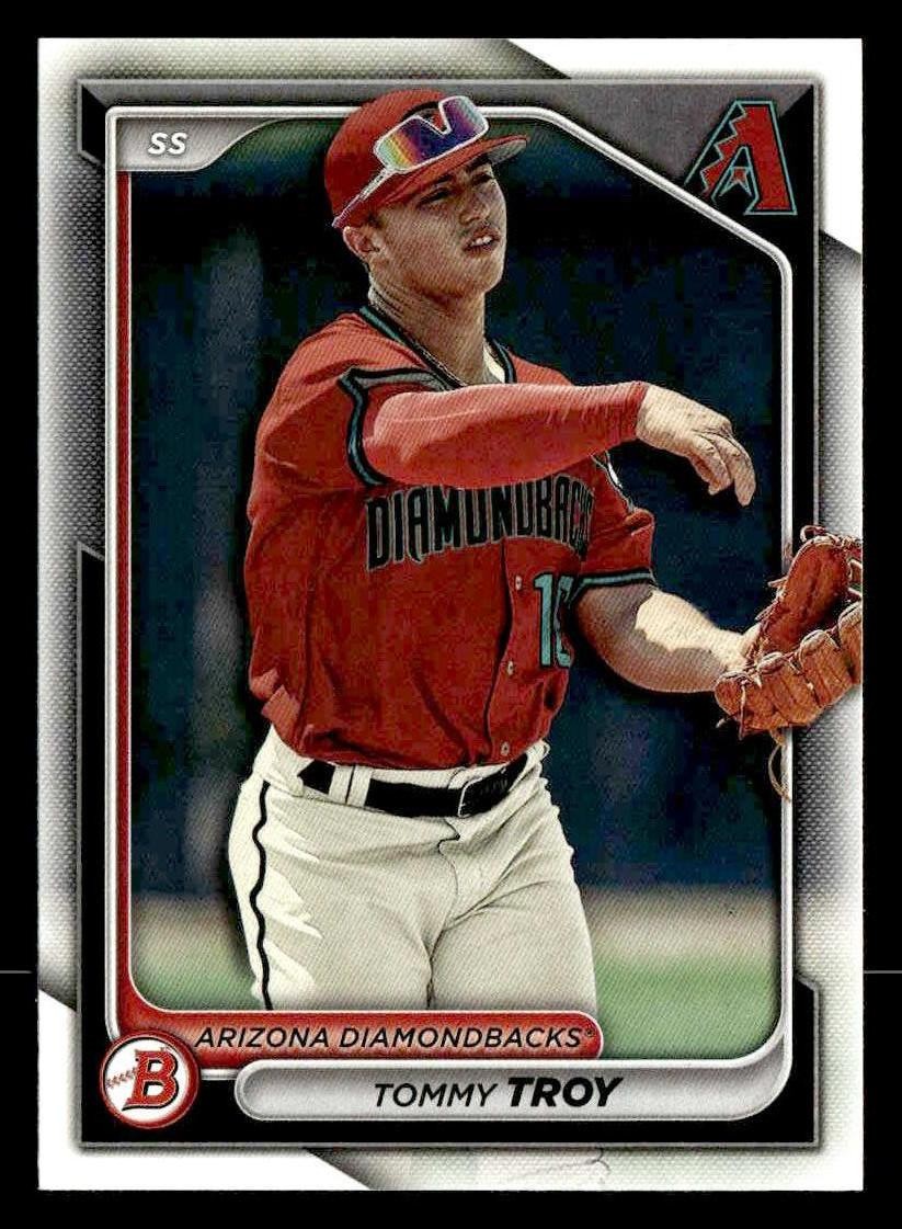 This is a nice example of a 2024 Bowman #BP-76 Tommy Troy Prospects