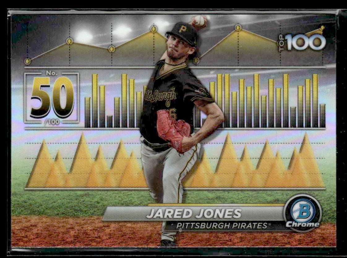 This is a nice example of a 2024 Bowman #BTP-50 Jared Jones Bowman Scouts' Top 100