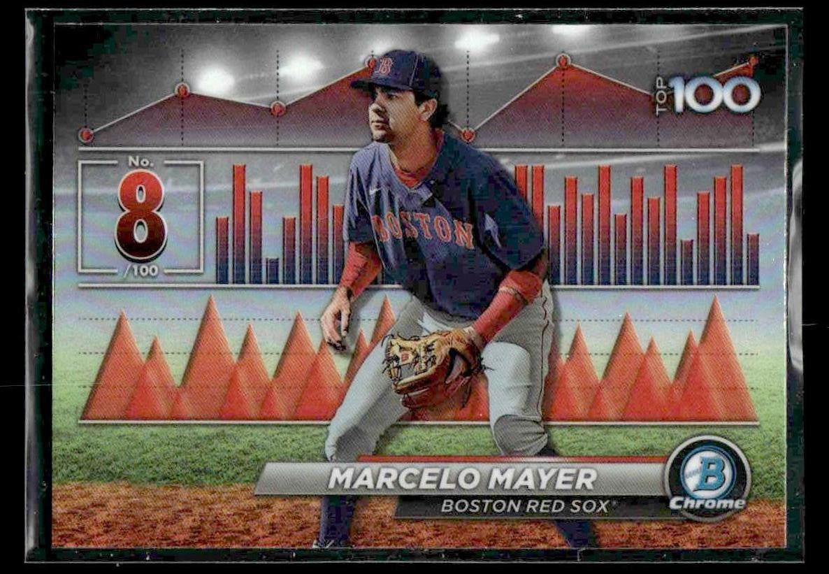 This is a nice example of a 2024 Bowman #BTP-8 Marcelo Mayer Bowman Scouts' Top 100
