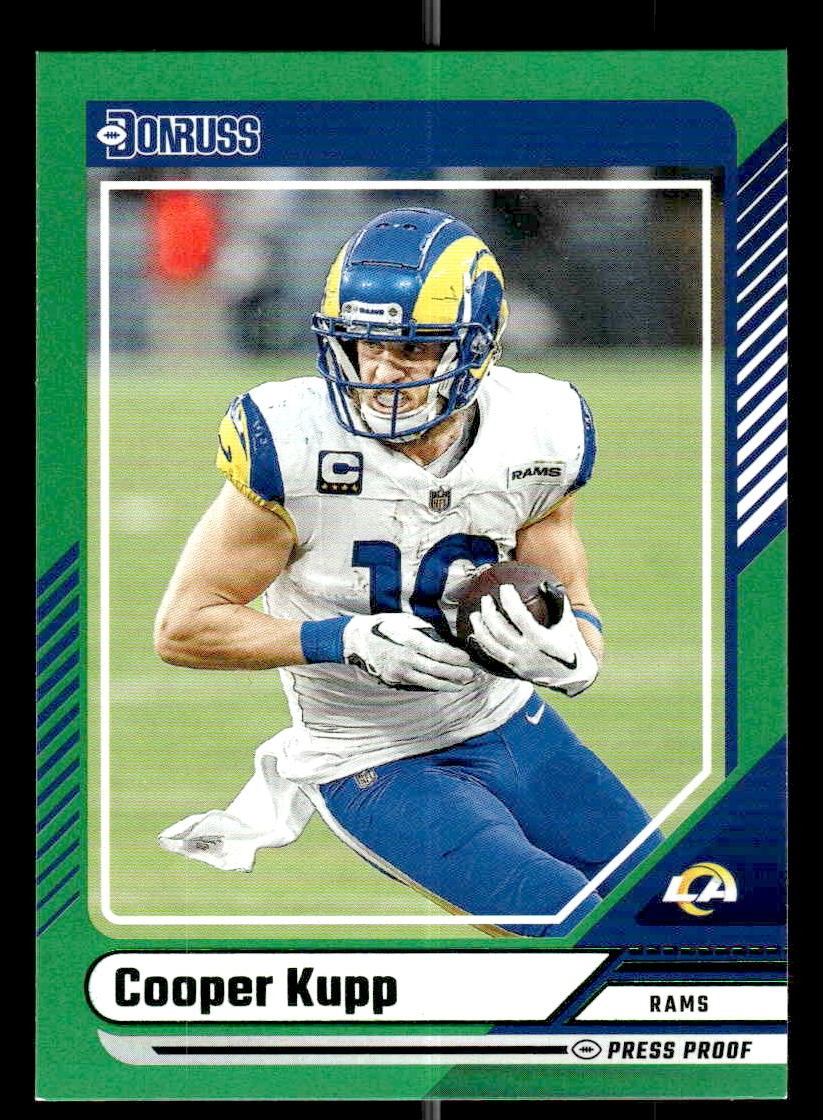 This is a nice example of a 2024 Donruss #258 Cooper Kupp Press Proof Green