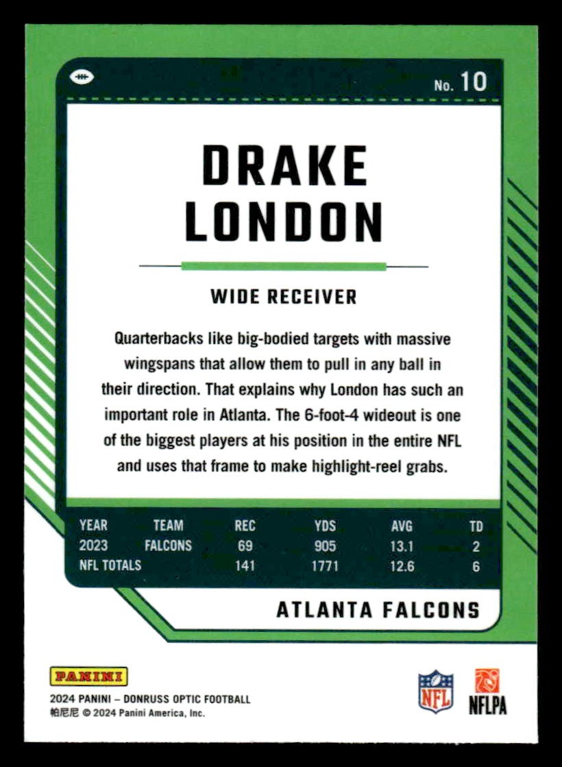 This is a sharp example of the 2024 Donruss Optic #10 featuring Drake London.