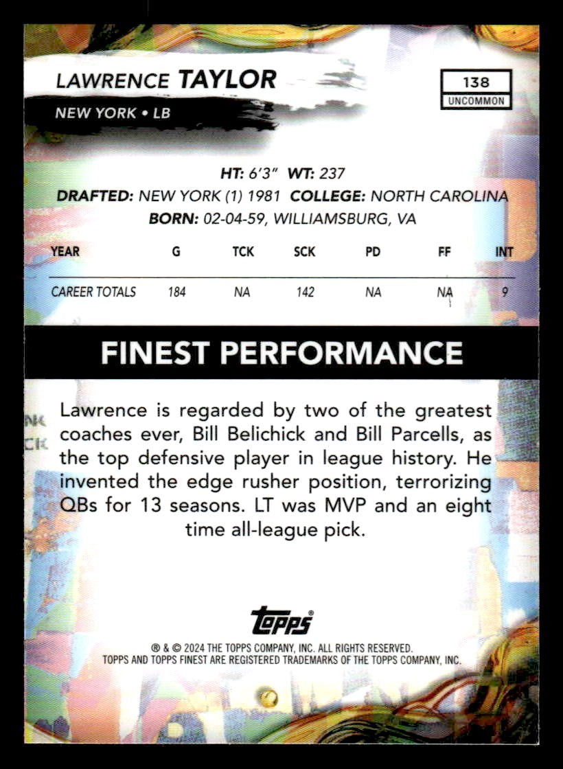 This is a nice example of a 2024 Finest #138 Lawrence Taylor