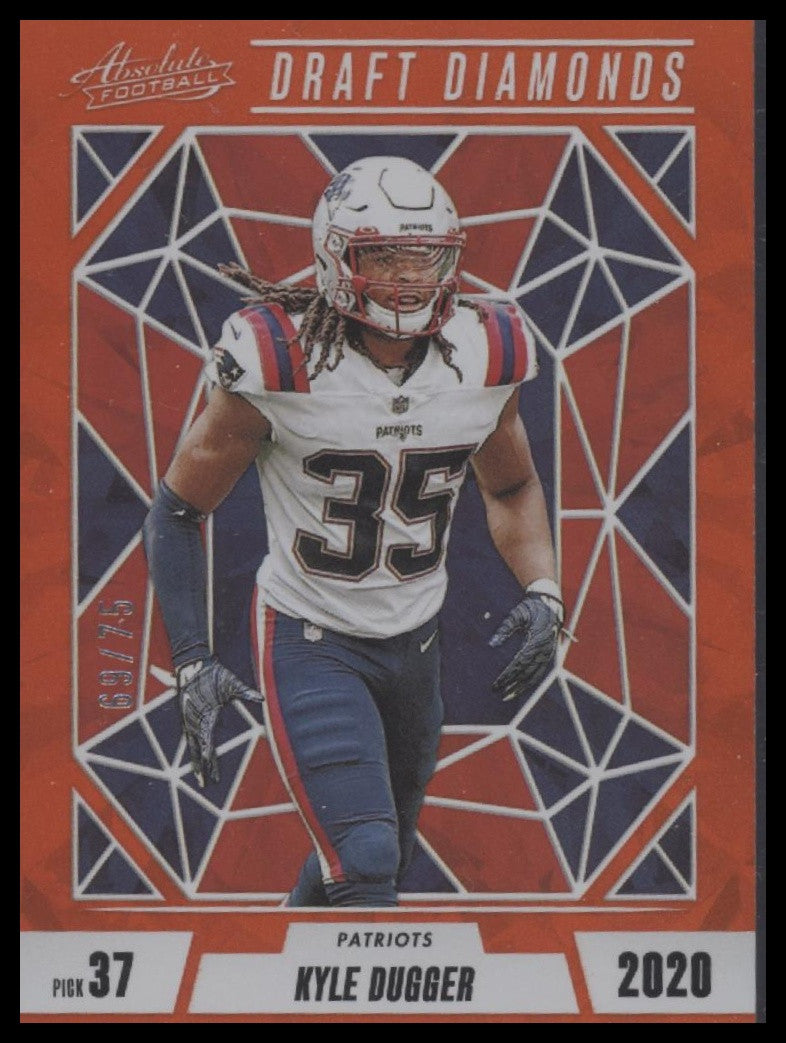 This is a nice example of a 2024 Panini Absolute #DD-KDR Kyle Dugger Draft Diamonds Orange Spectrum