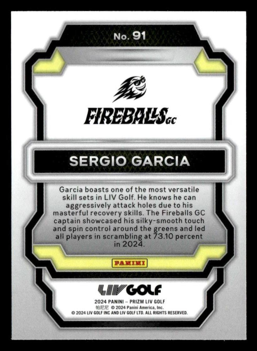 This is a nice example of a 2024 Panini Prizm LIV #91 Sergio Garcia