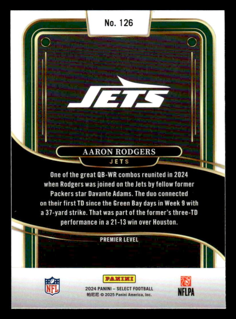 This is a nice example of a 2024 Panini Select #126 Aaron Rodgers