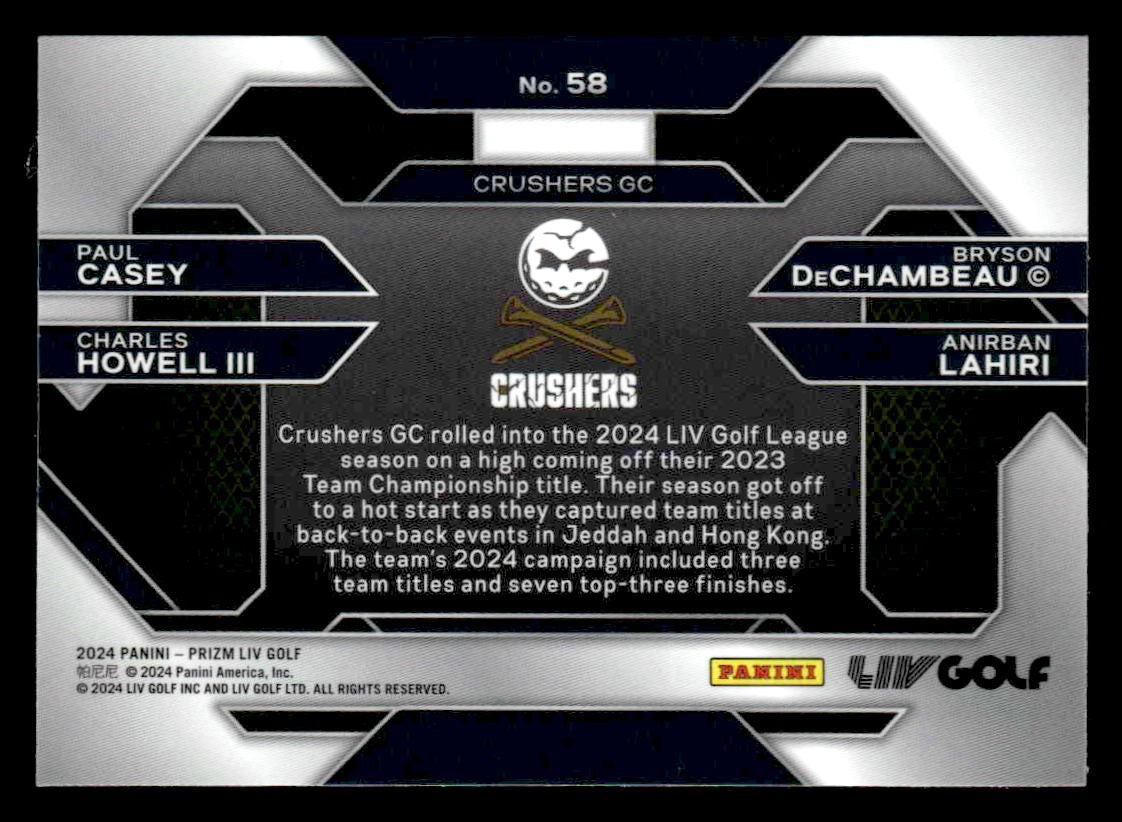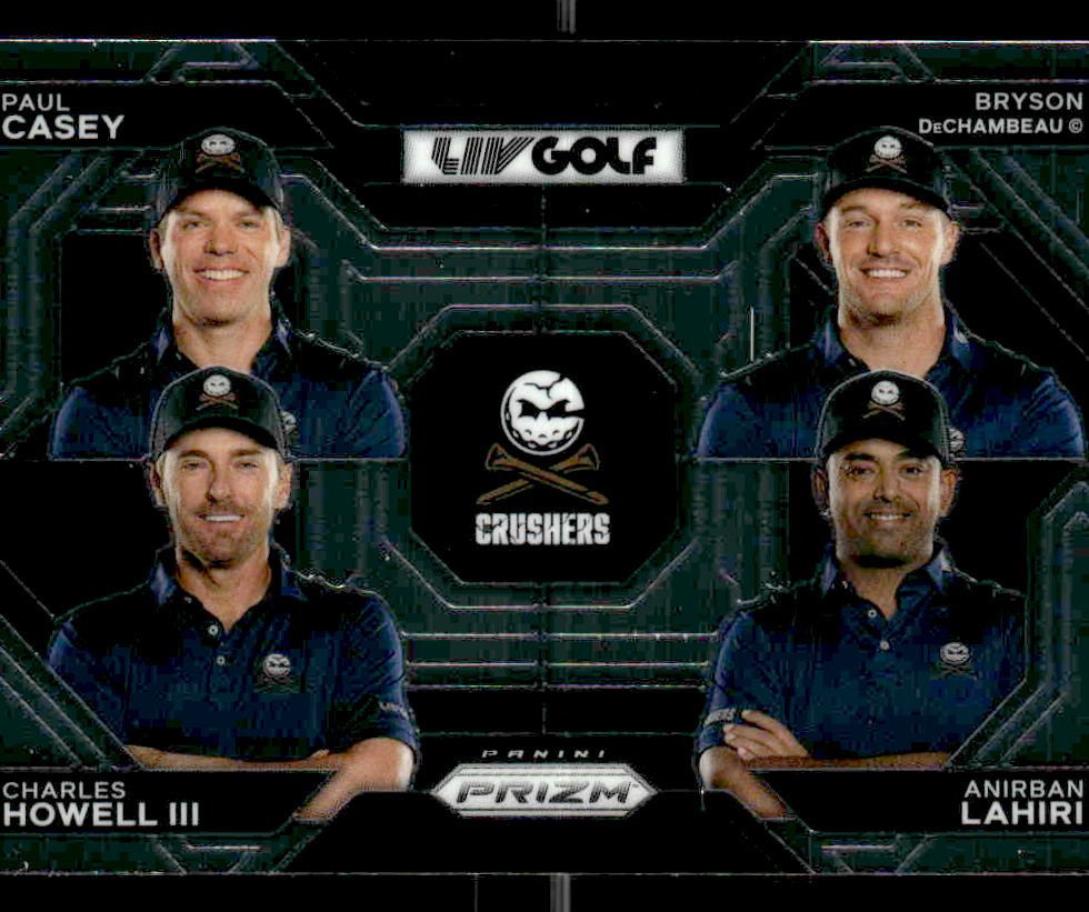 This is a nice example of a 2024 Panini Prizm LIV #58 Charles Howell III/Anirban Lahiri/Paul Casey/Bryson DeChambeau