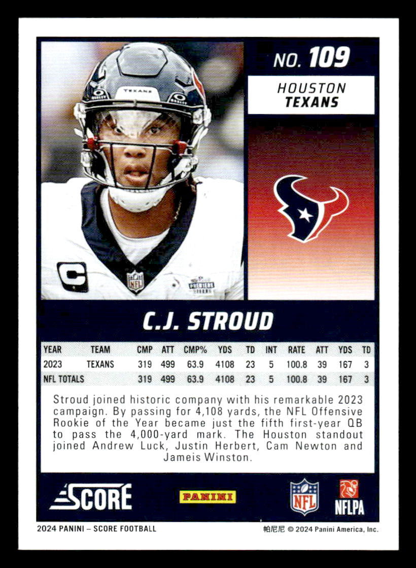 This is a nice example of a 2024 Score #109 C.J. Stroud