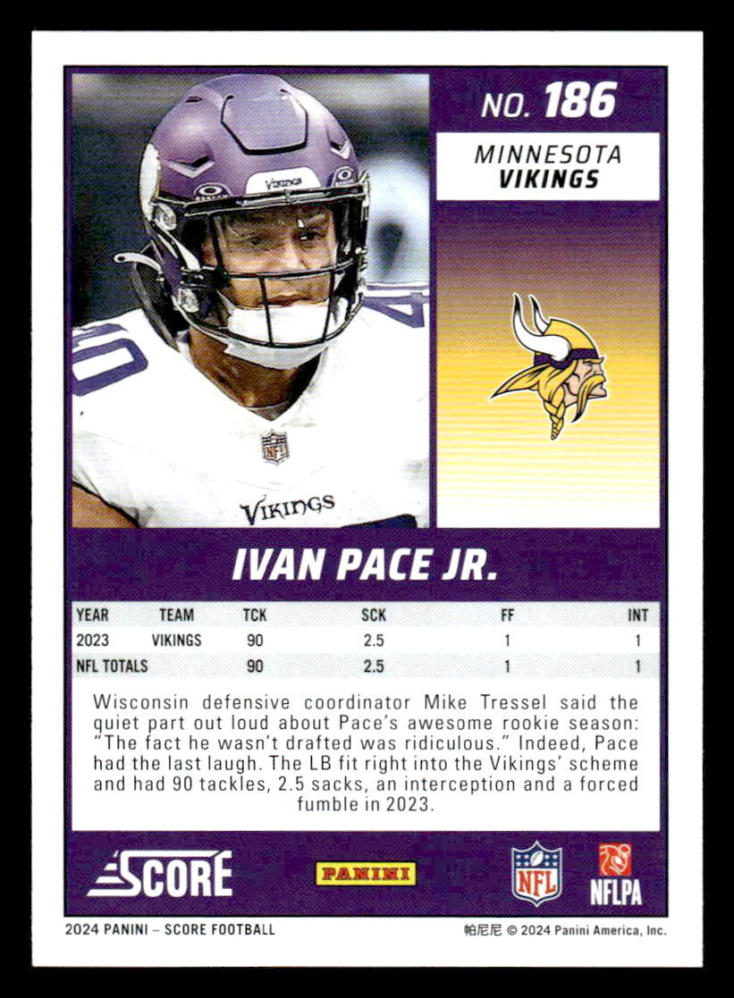 This is a nice example of a 2024 Score #186 Ivan Pace Jr.
