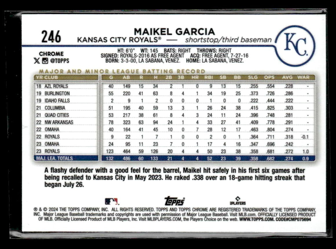 2024 Topps Chrome #246 Maikel Garcia X-Fractors
