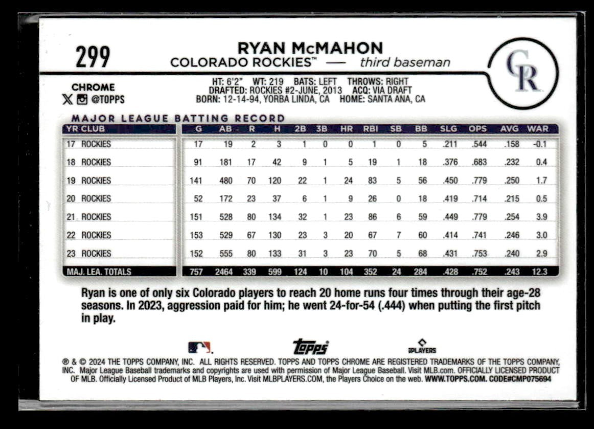2024 Topps Chrome #299 Ryan McMahon X-Fractors