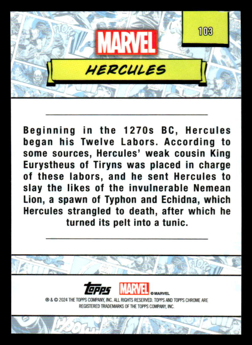 This is a nice example of a 2024 Topps Chrome Marvel #103 Hercules .Other important information about this card: .Please check out our other listings for more great cards.
