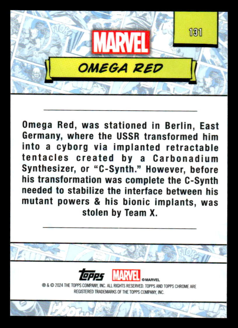 This is a nice example of a 2024 Topps Chrome Marvel #131 Omega Red .Other important information about this card: .Please check out our other listings for more great cards.