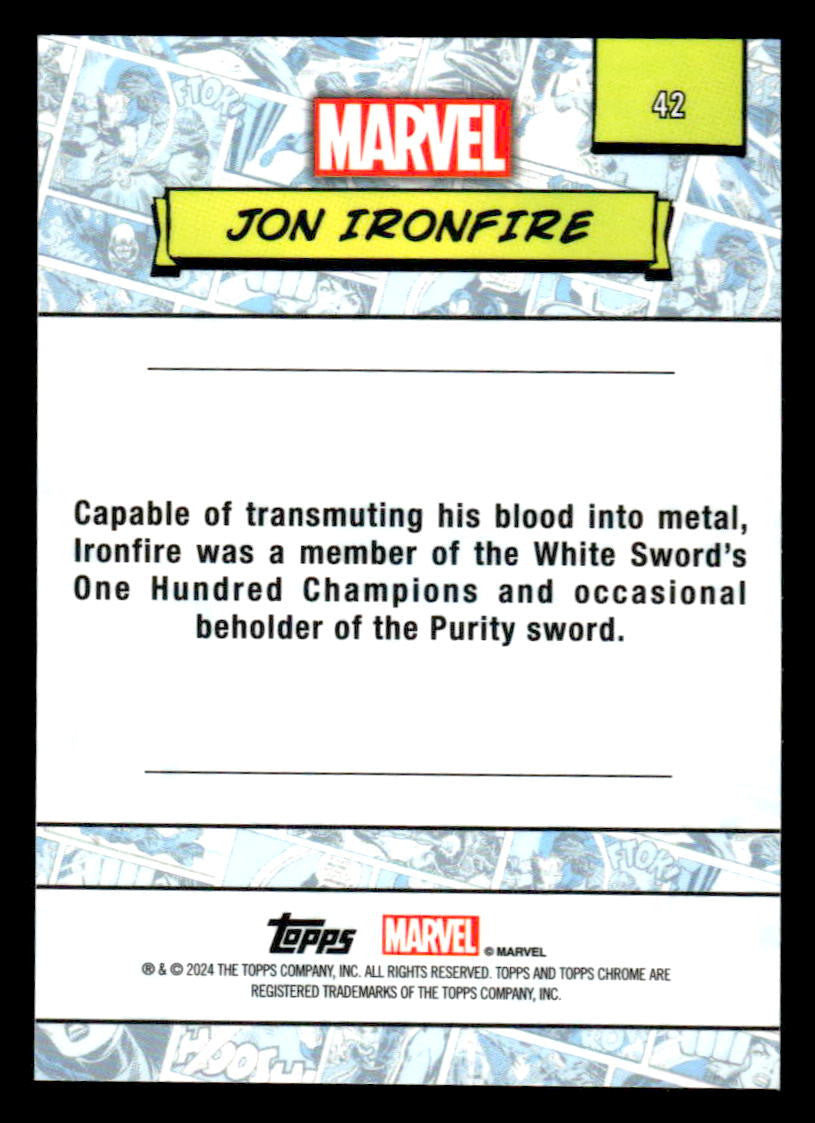 This is a nice example of a 2024 Topps Chrome Marvel #42 Jon Ironfire .Other important information about this card: .Please check out our other listings for more great cards.