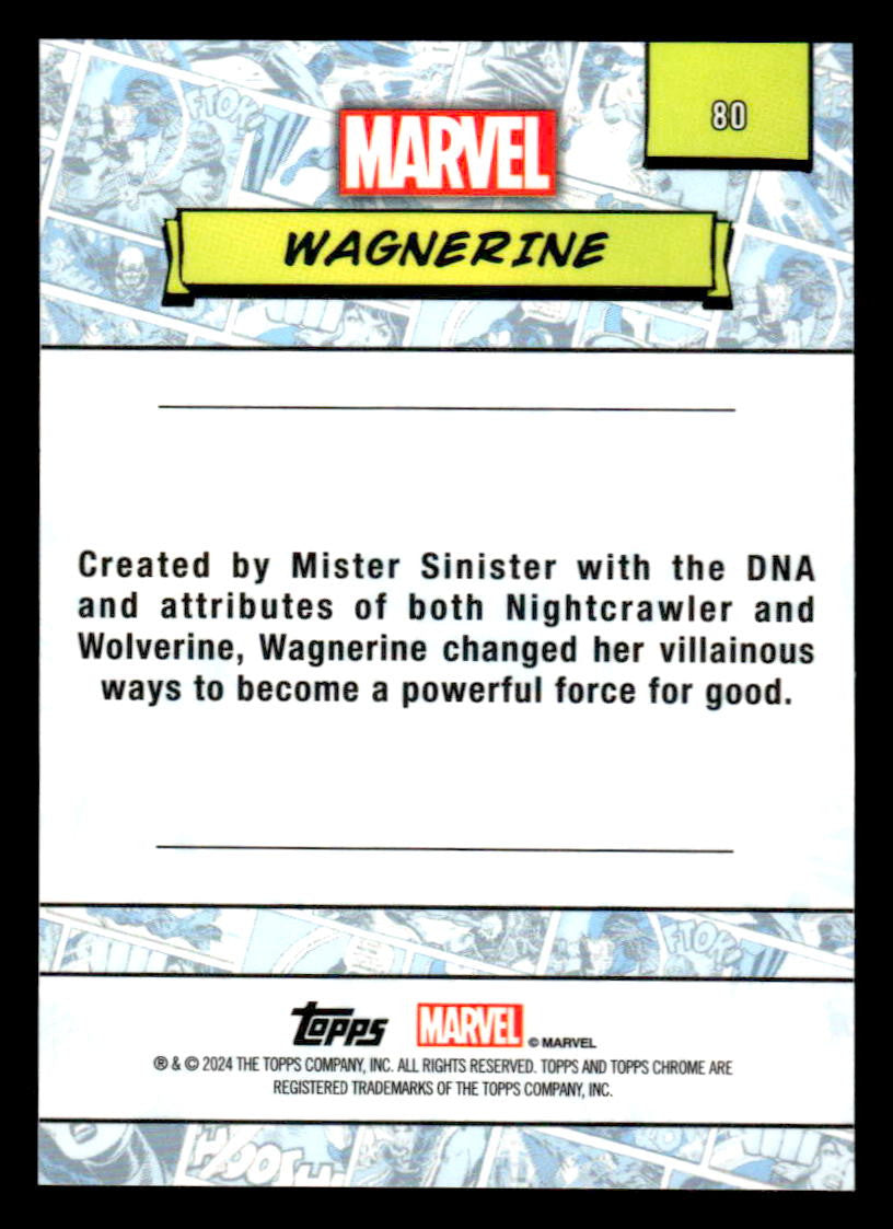 This is a nice example of a 2024 Topps Chrome Marvel #80 Wagnerine .Other important information about this card: .Please check out our other listings for more great cards.