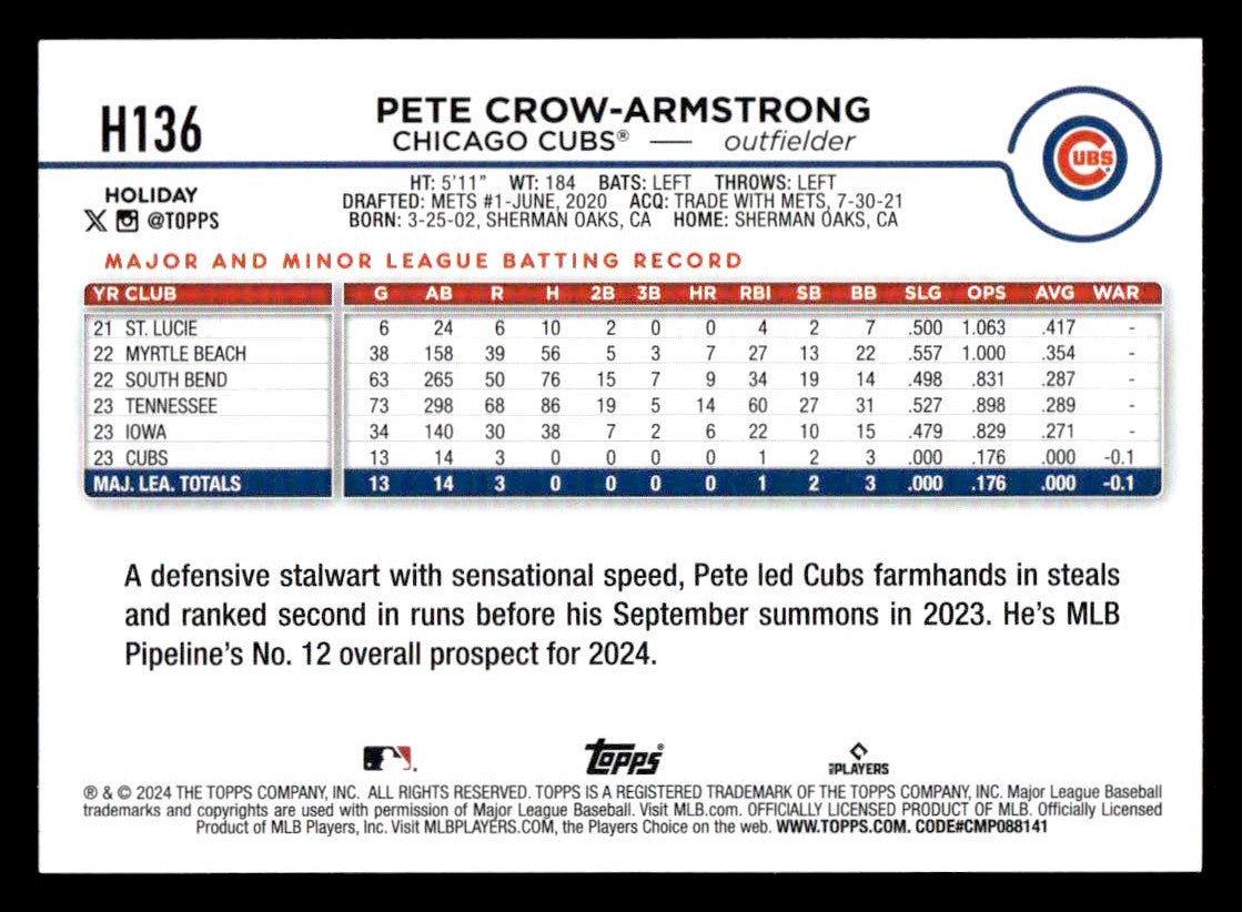 2024 Topps Holiday #H136 Pete Crow-Armstrong