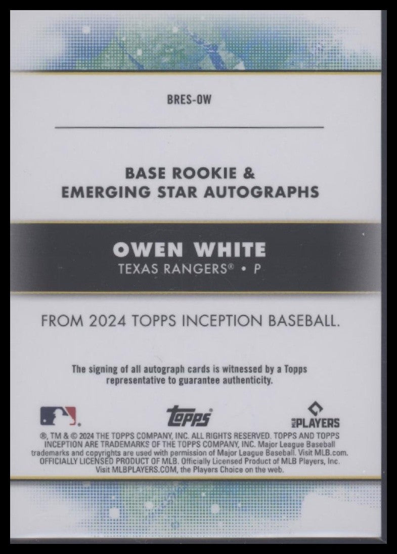 This is a sharp example of the 2024 Topps Inception #BRES-OW featuring Owen White.
